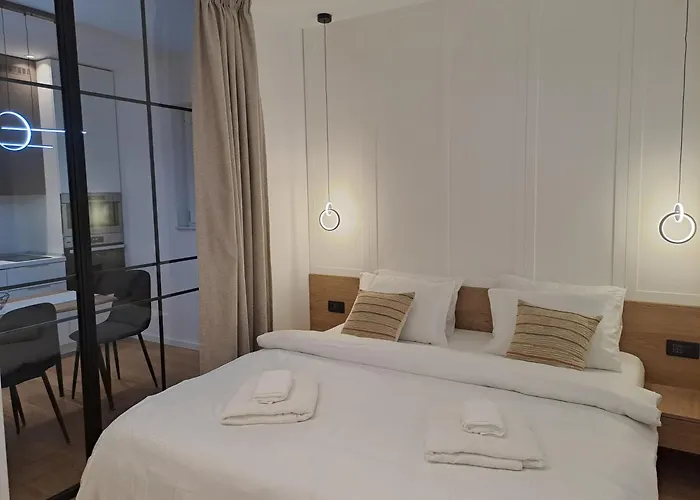 - ❓Czy w apartamencie Centar znajduje się kuchnia do użytku gości?Tak, apartament Centar wyposażony jest w pełnowymiarową kuchnię i oferuje kuchenkę mikrofalową.